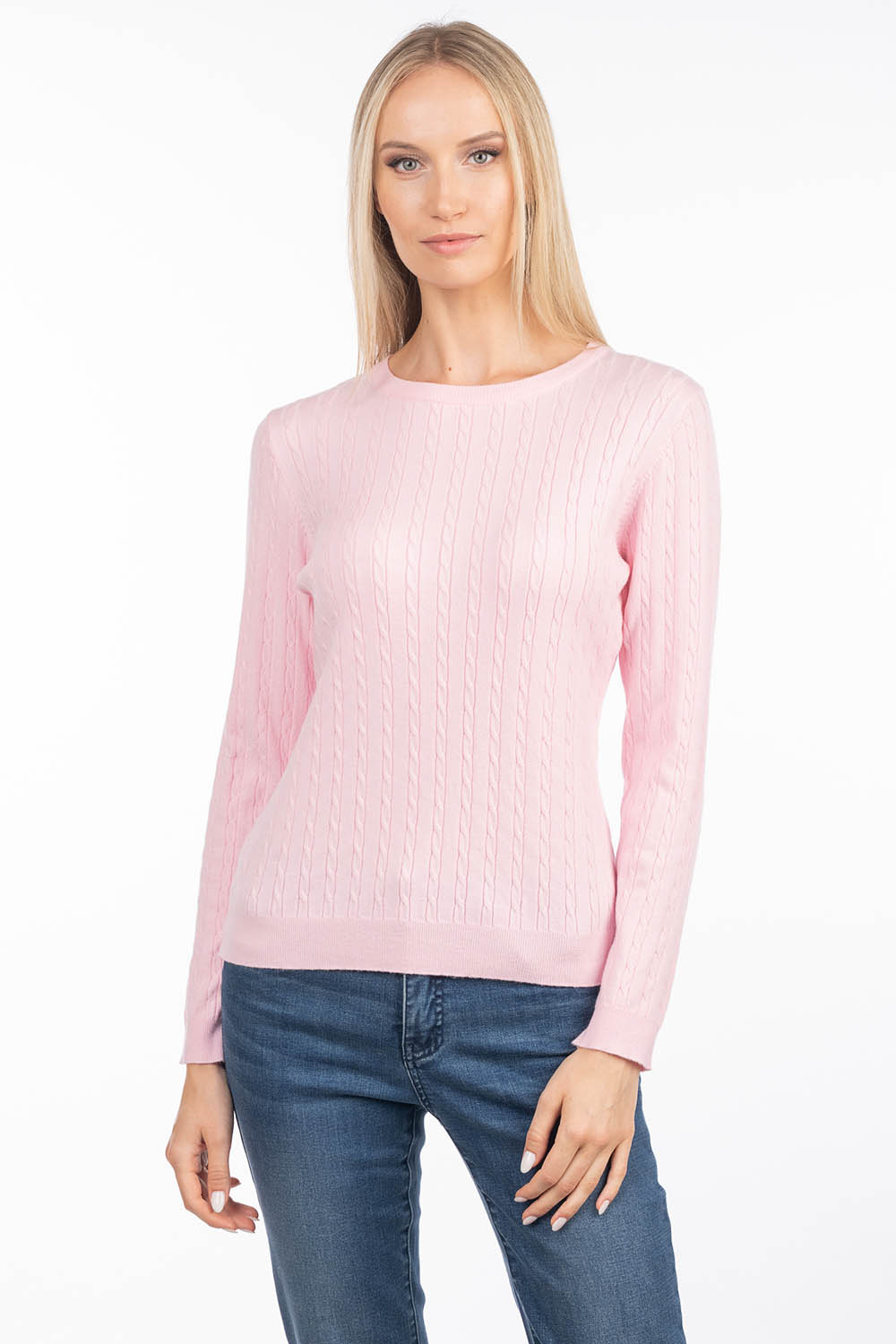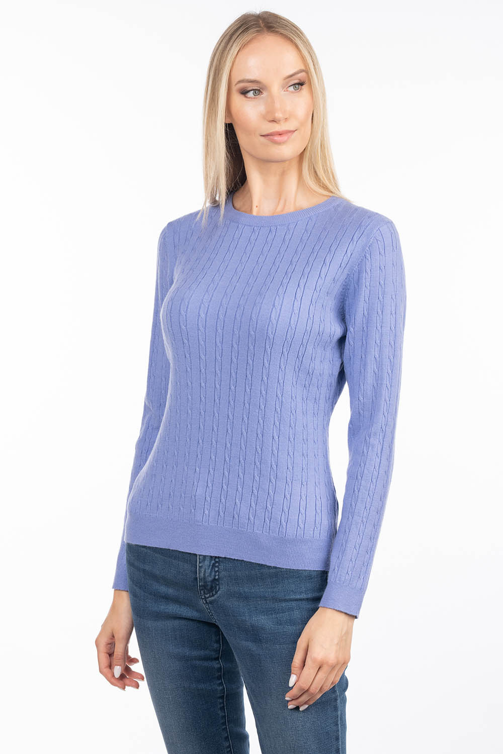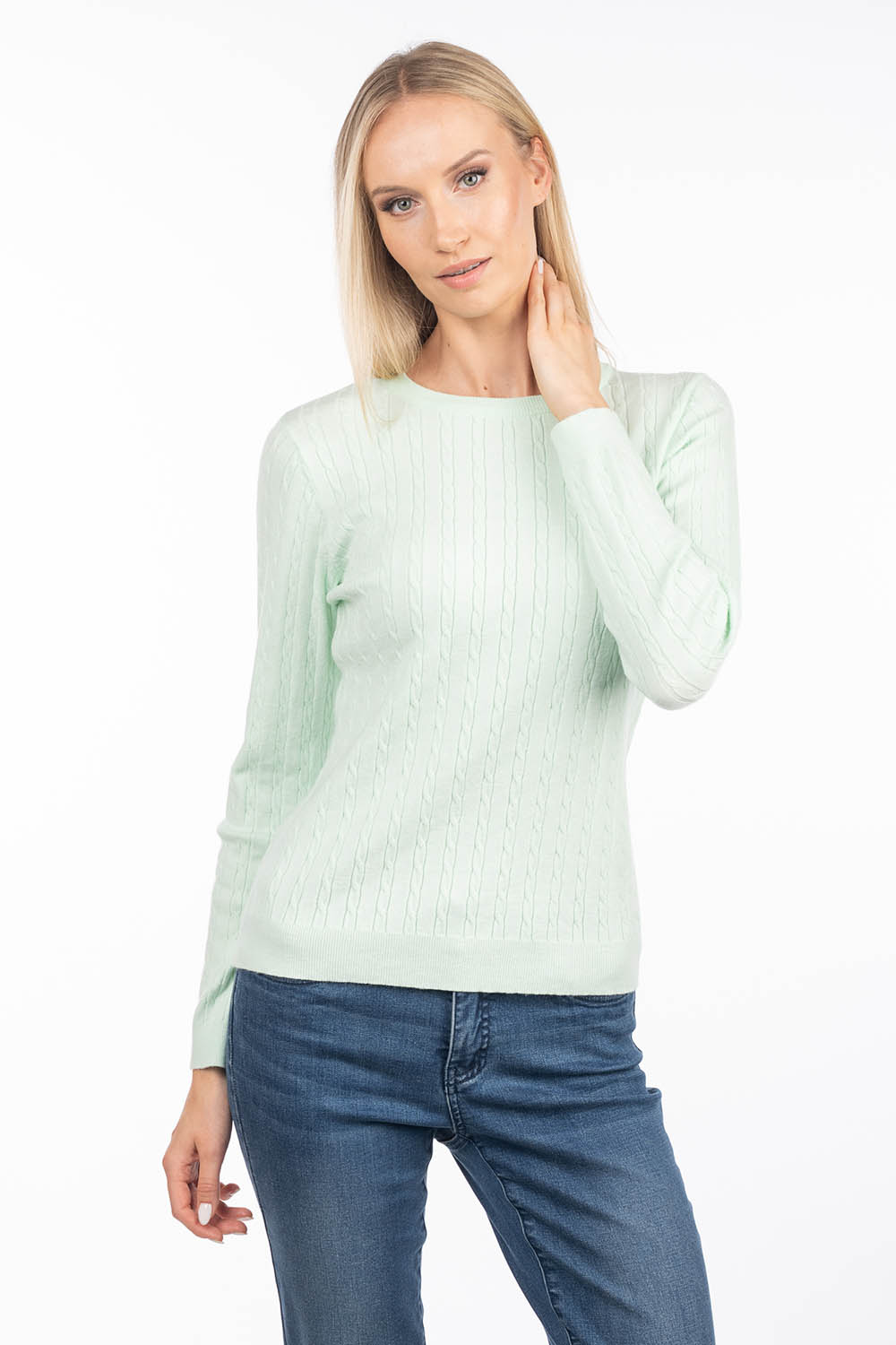 A timeless cable-knit sweater that offers softness and comfort for everyday wear. The soft, skin-friendly viscose yarn feels pleasant against the skin, while the gently figure-following silhouette creates an elegant and feminine look.