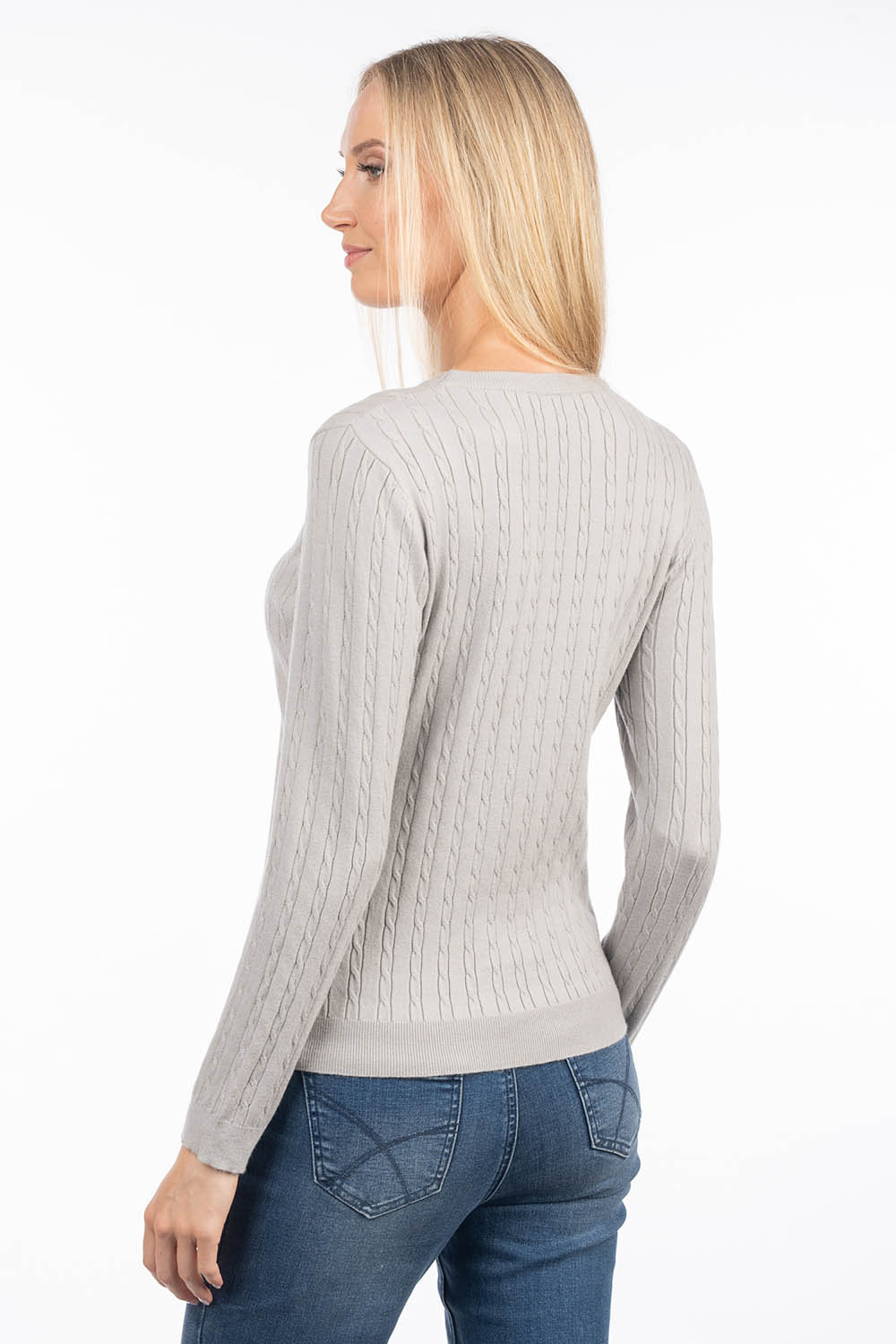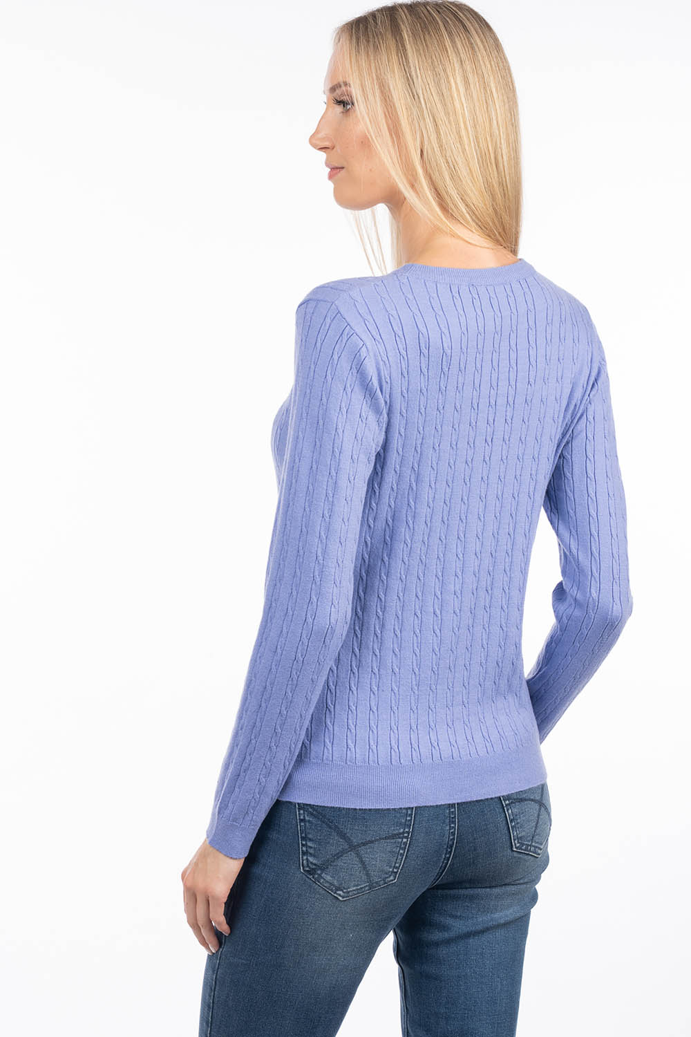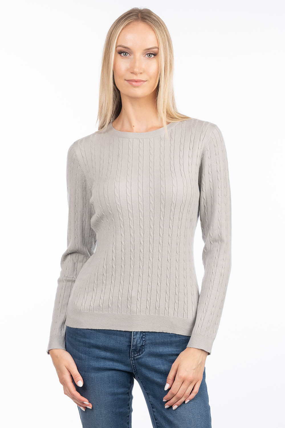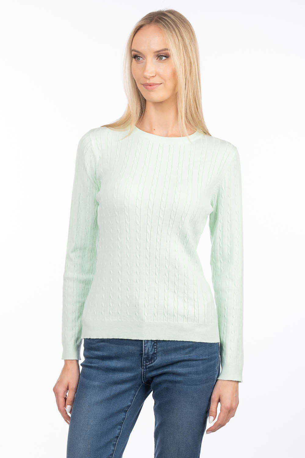 A timeless cable-knit sweater that offers softness and comfort for everyday wear. The soft, skin-friendly viscose yarn feels pleasant against the skin, while the gently figure-following silhouette creates an elegant and feminine look.