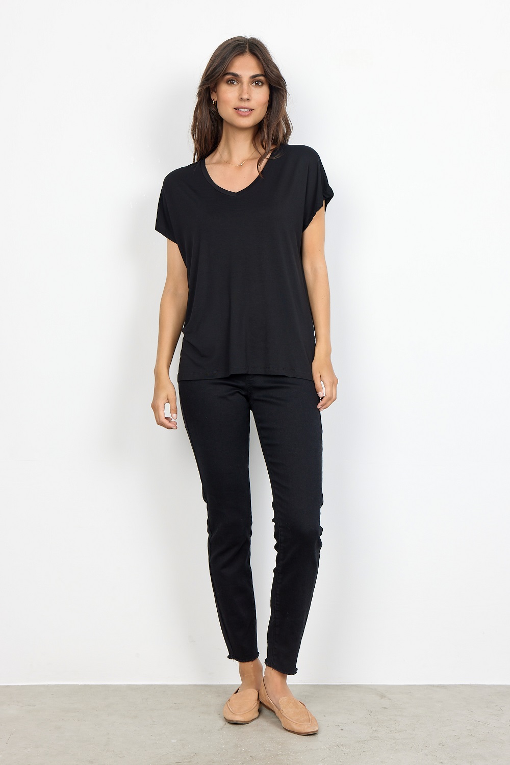 SC-Marica 32 is a basic t-shirt in a lyocell blend. It has a soft v-neckline, short sleeves and a loose fit. This lovely t-shirt is a basic item and therefore a must have in every wardrobe, it comes in several colors.