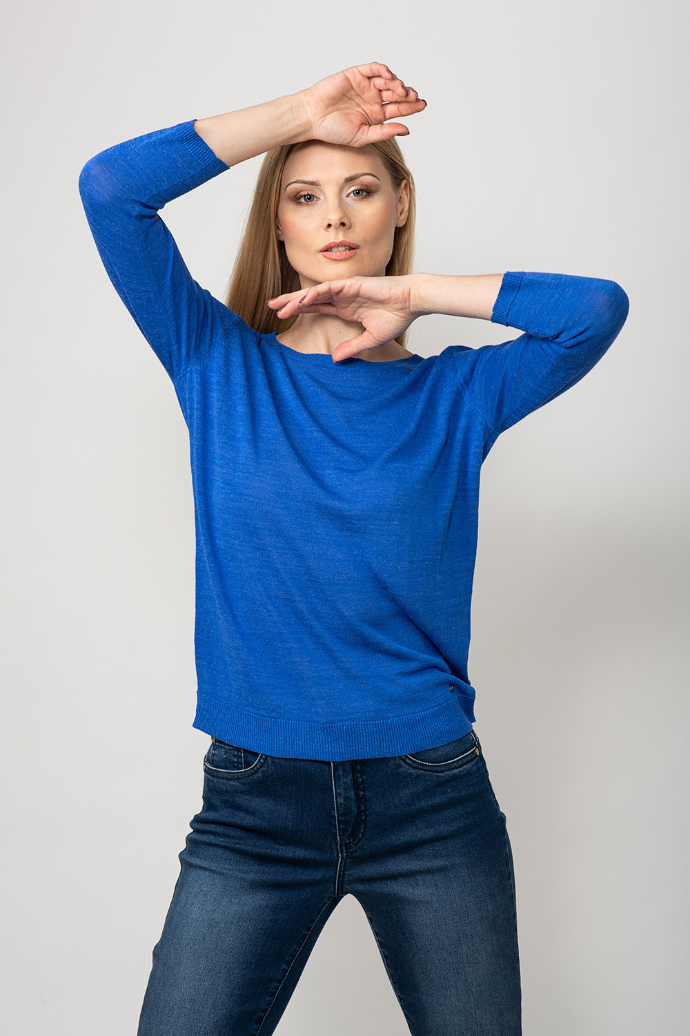 Свитер из хорошо дышащей смесовой пряжи лен-вискоза. Свободный крой придает повседневный, но элегантный вид.