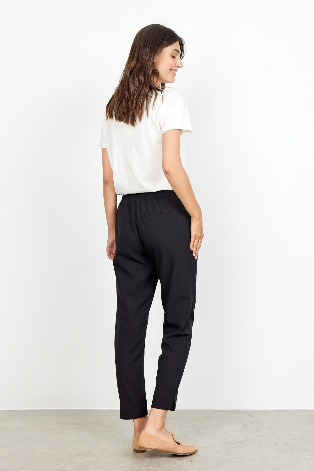 Брюки Saya1B – удобные, но классические брюки с резинкой на талии, завязками и длиной 7/8. Наденьте его как в повседневном стиле с вашим любимым свитером, так и в классической рубашке и блейзере.