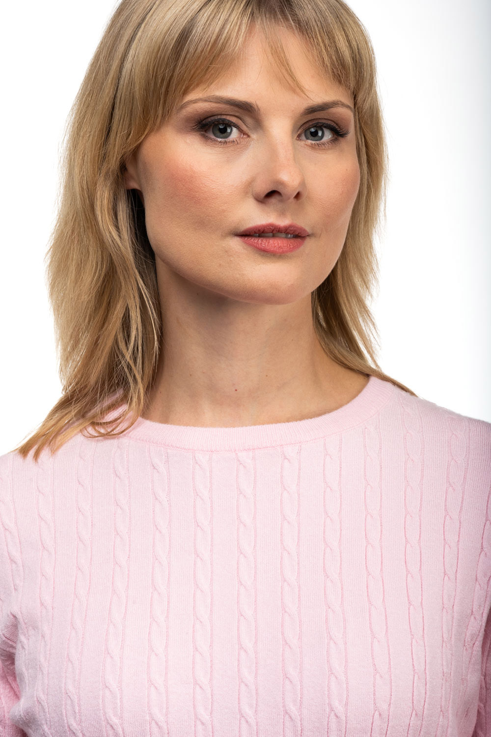 Julia — Свитер пальмовой вязки является вневременным стилем. Классический силуэт, который слегка следует линию тела. Изделие связано из очень мягкой и приятной для кожи пряжи.