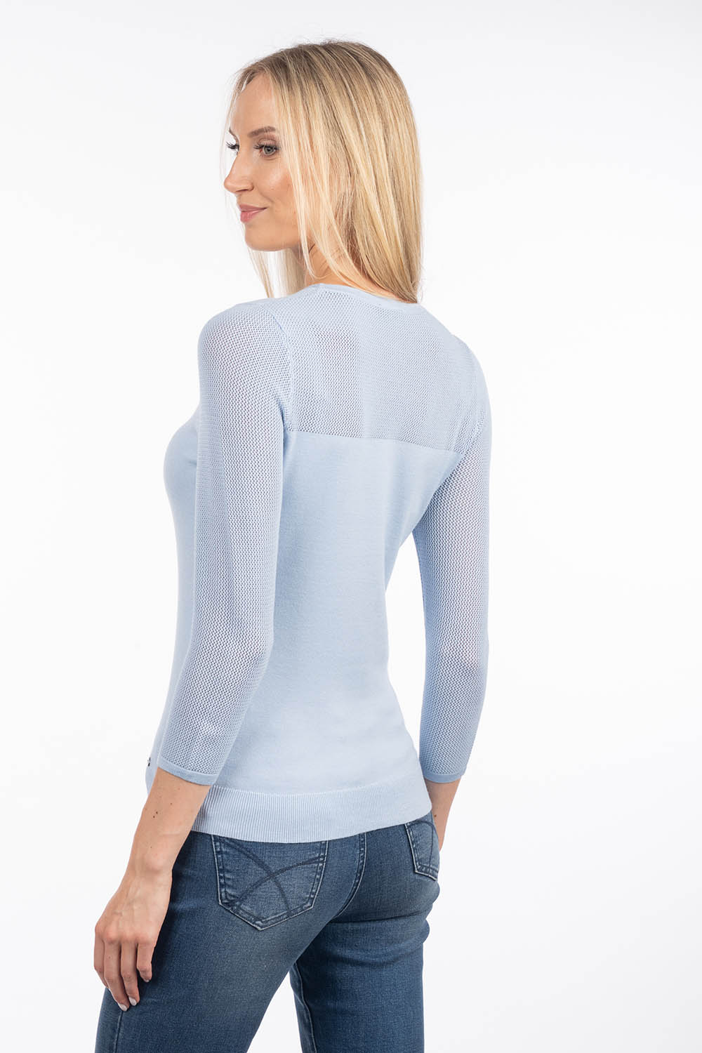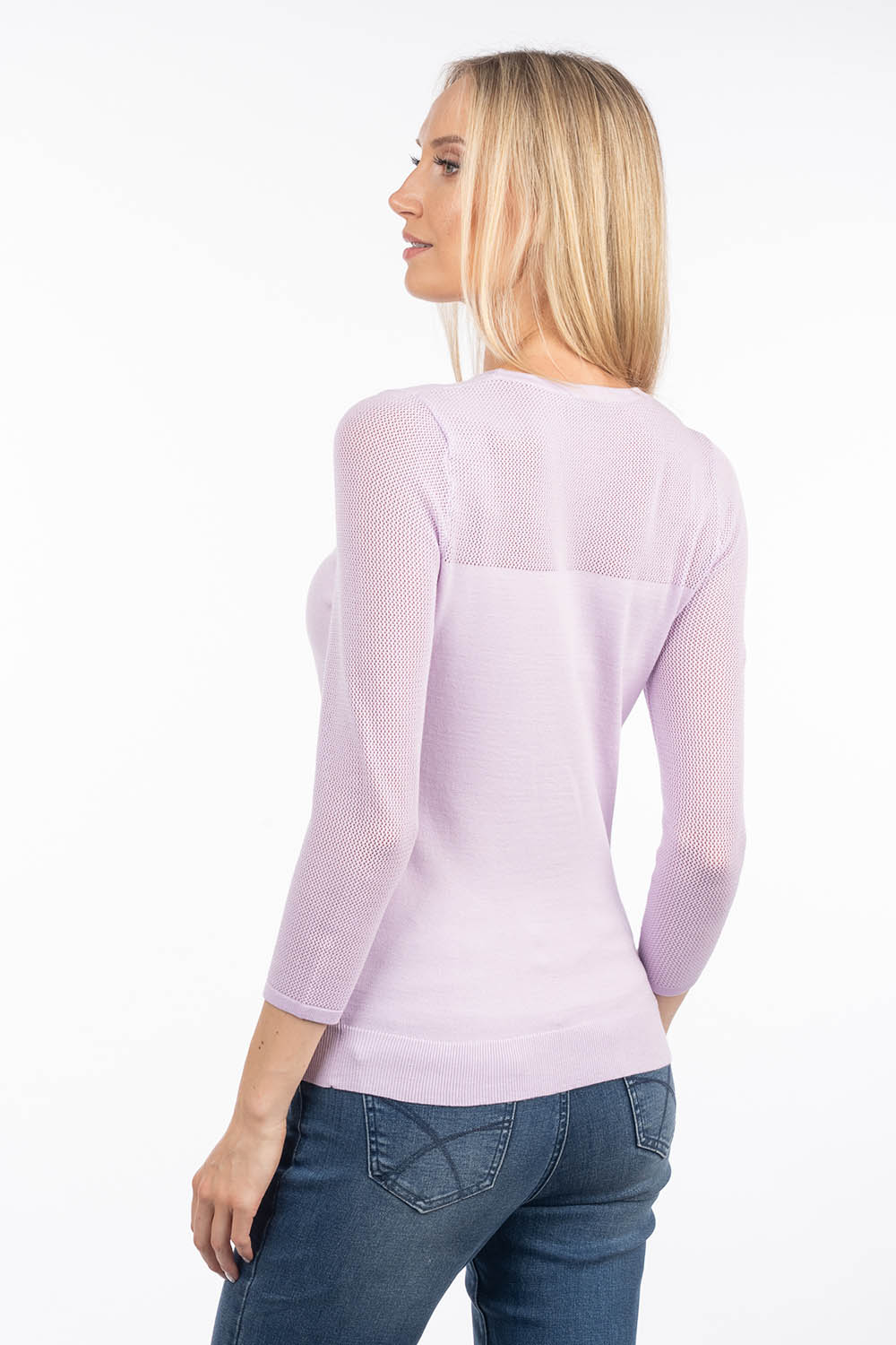Õhuline ja elegantne kampsun, mida kaunistavad pitskoes dekoltee ja varrukad. Pehme viskooslõng on naha vastas õrn ning kergelt taljet järgiv lõige loob naiseliku ja viimistletud üldmulje. Ideaalne valik igapäevaseks kandmiseks või pidulikumaks puhuks.