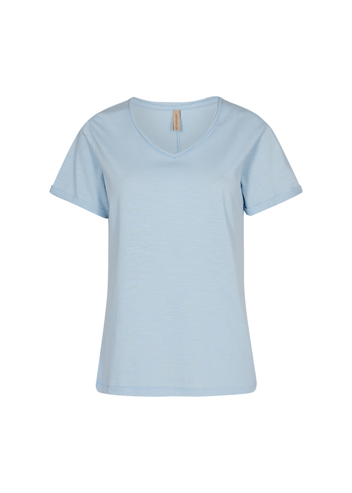 BABETTE 1 on pehmest orgaanilisest puuvillast valmistatud T-särk. Särgil on v-kaelus ja lühikesed volditud varrukad. Klassikalise, kuid trendika välimuse saamiseks kombineerige kootud vestiga või suvise bleiseriga.