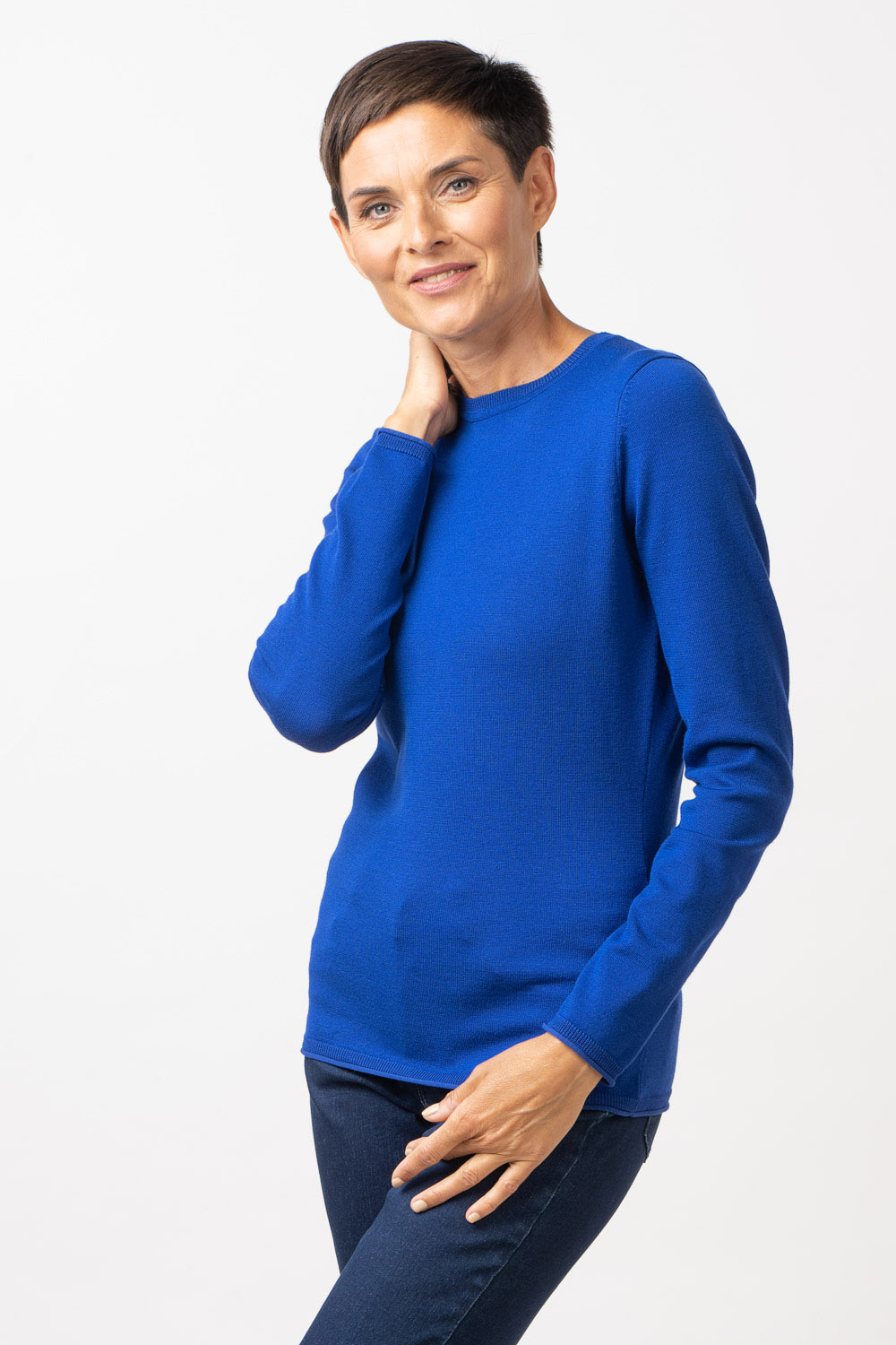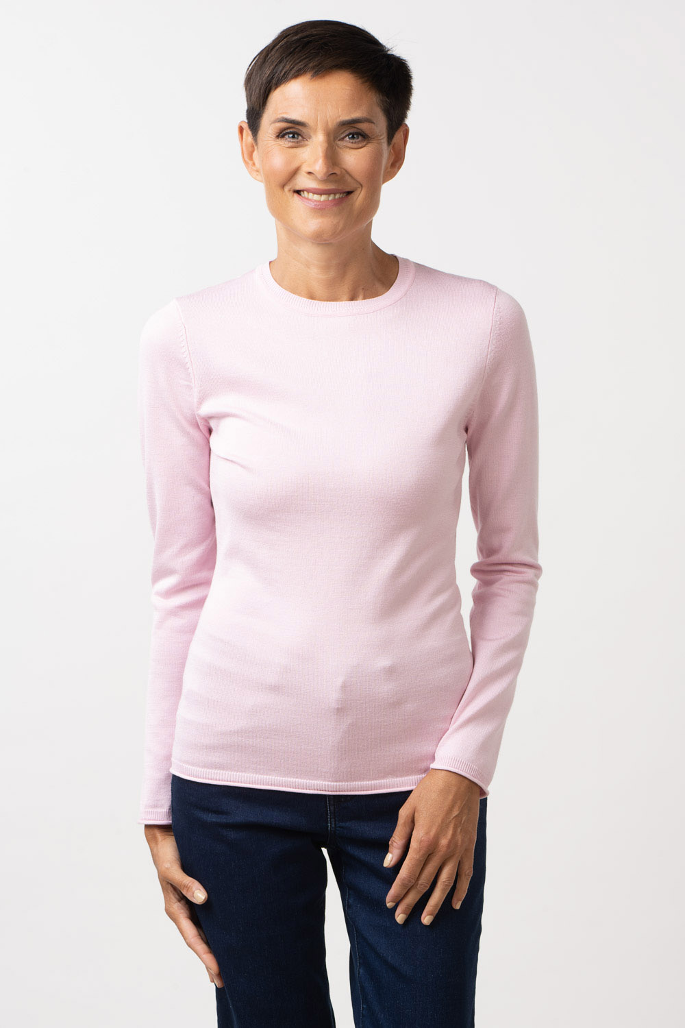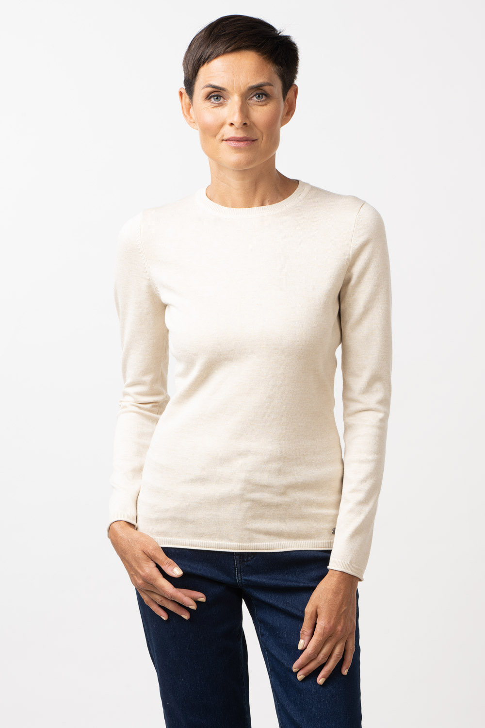 Mudel Alexa on ovaalse kaelusega džemper, mis oma minimalistliku disainiga on ajatu ja stiilne kanada igas olukorras. Toote varruka otstel ja all kehaosa all äärel on soonikdetail. Lõnga peamiseks koostisosaks on viskoos, mis teeb toote meeldivalt pehmeks ja nahasõbralikuks.