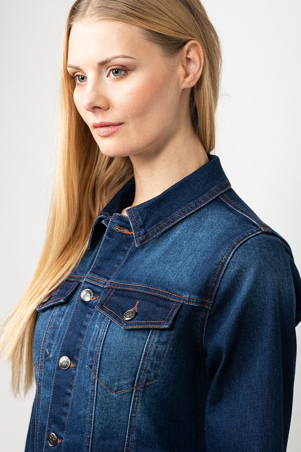 Elastsest tumesinisest denim kangast teksajakk. Klassikaline disain mis on alati mõnus ja praktiline peale visata välja minnes.