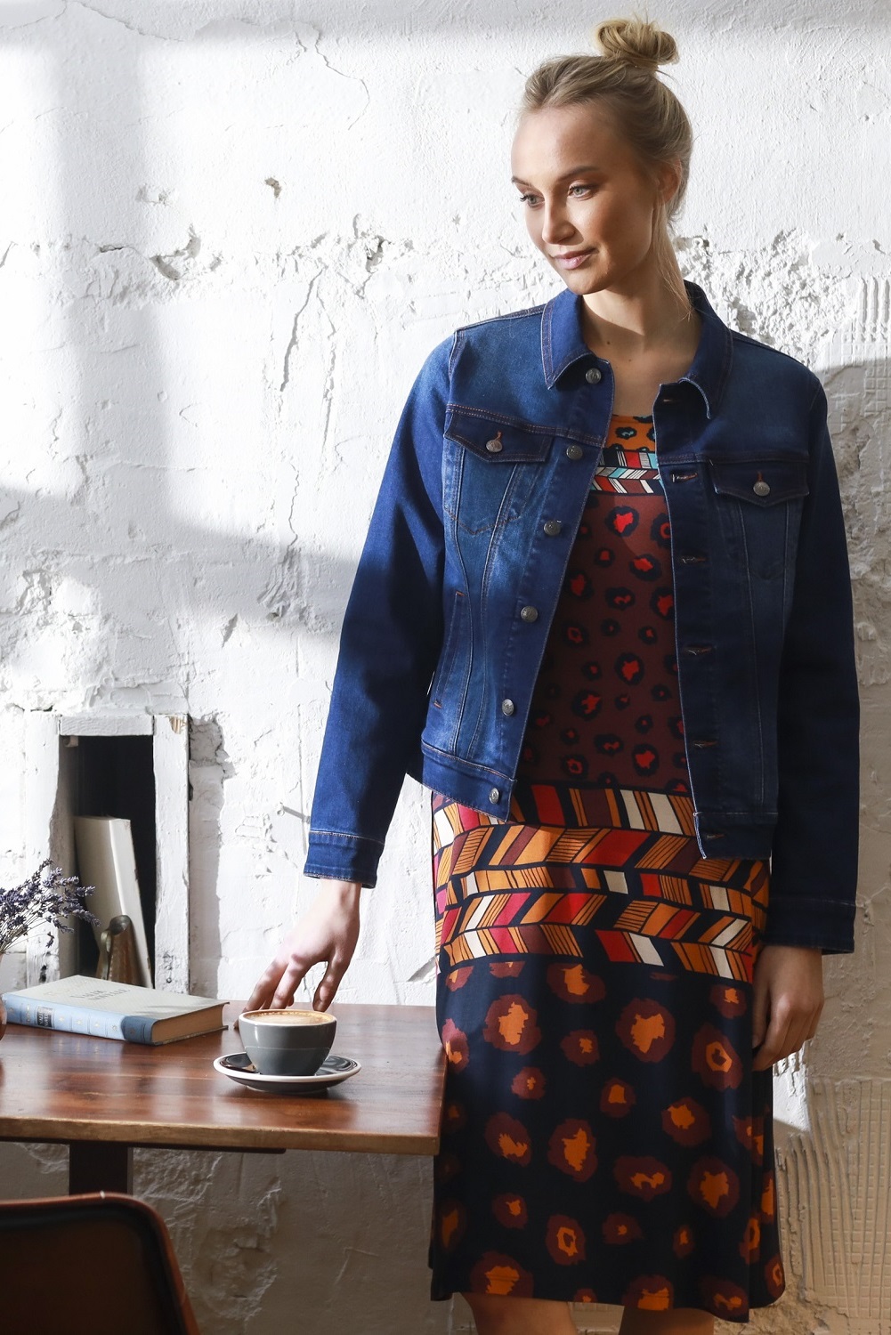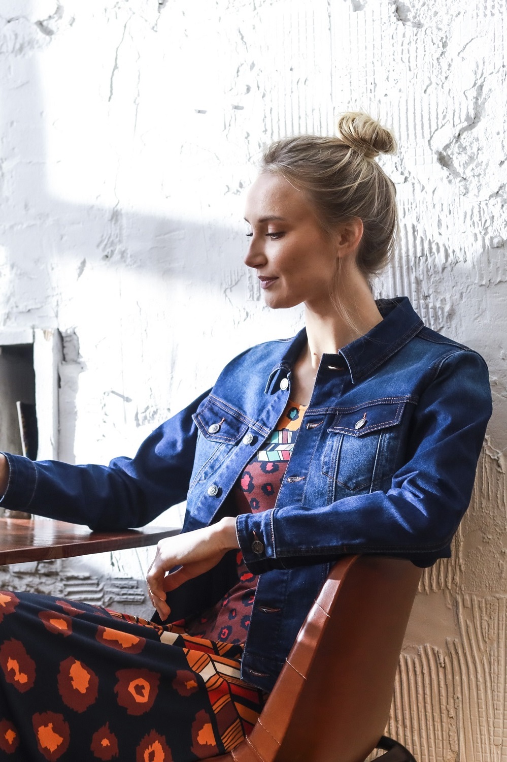 – Tumesinine denim värv, pruunide tepingutega
