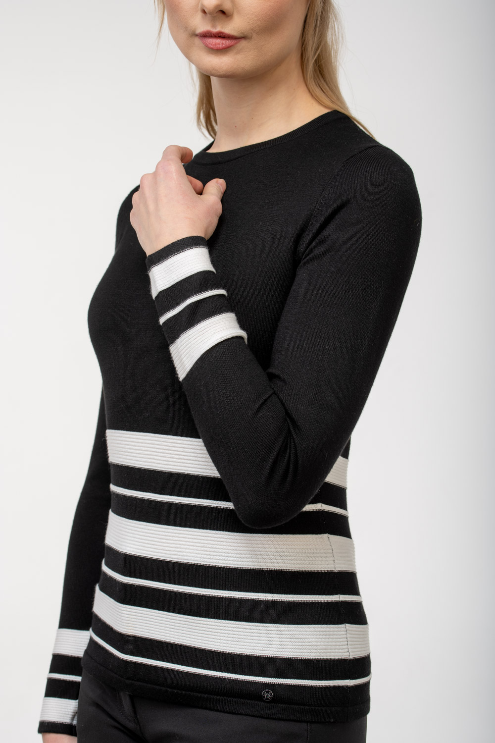 Meie modell on 176 cm pikk ja kannab suurust S (Small). Toote rinnaümbermõõt (cm): S 86, M 92, L 98, XL 104, XXL 110, XXXL 116; toote pikkus õla ja kaeluse kokkupuute punktist (cm): S 60, M 61, L 62, XL 63, XXL 64, XXXL 65. Tootel on klassikaline pisut figuuri järgiv istuvus. Kui olete varasemalt Maglia tooteid ostnud, soovitame valida oma tavapärase suuruse.